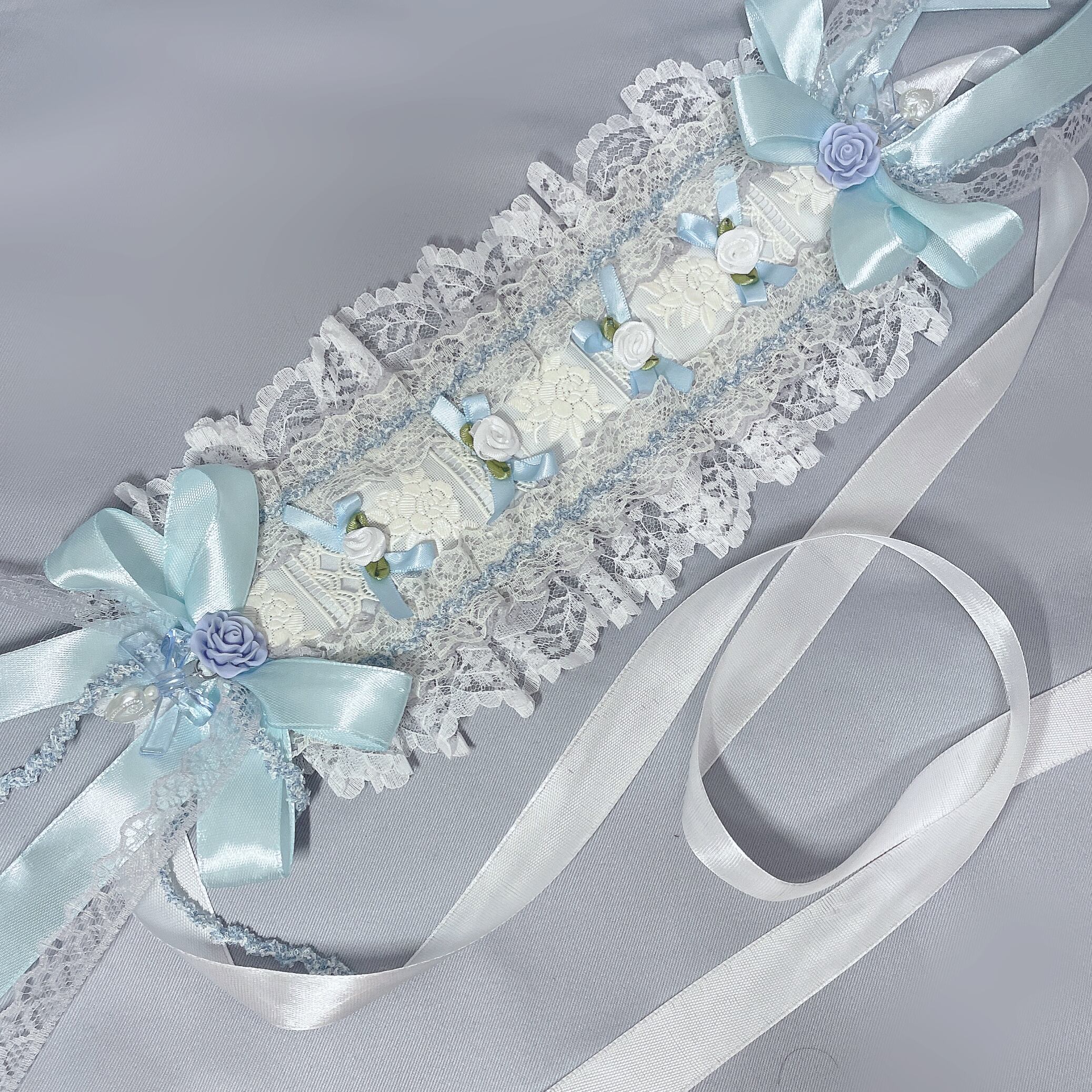 薔薇素材をベースに、ミニリボンやバラパーツを使用した、ロリィタ&ガーリーなイメージのヘッドドレスです。