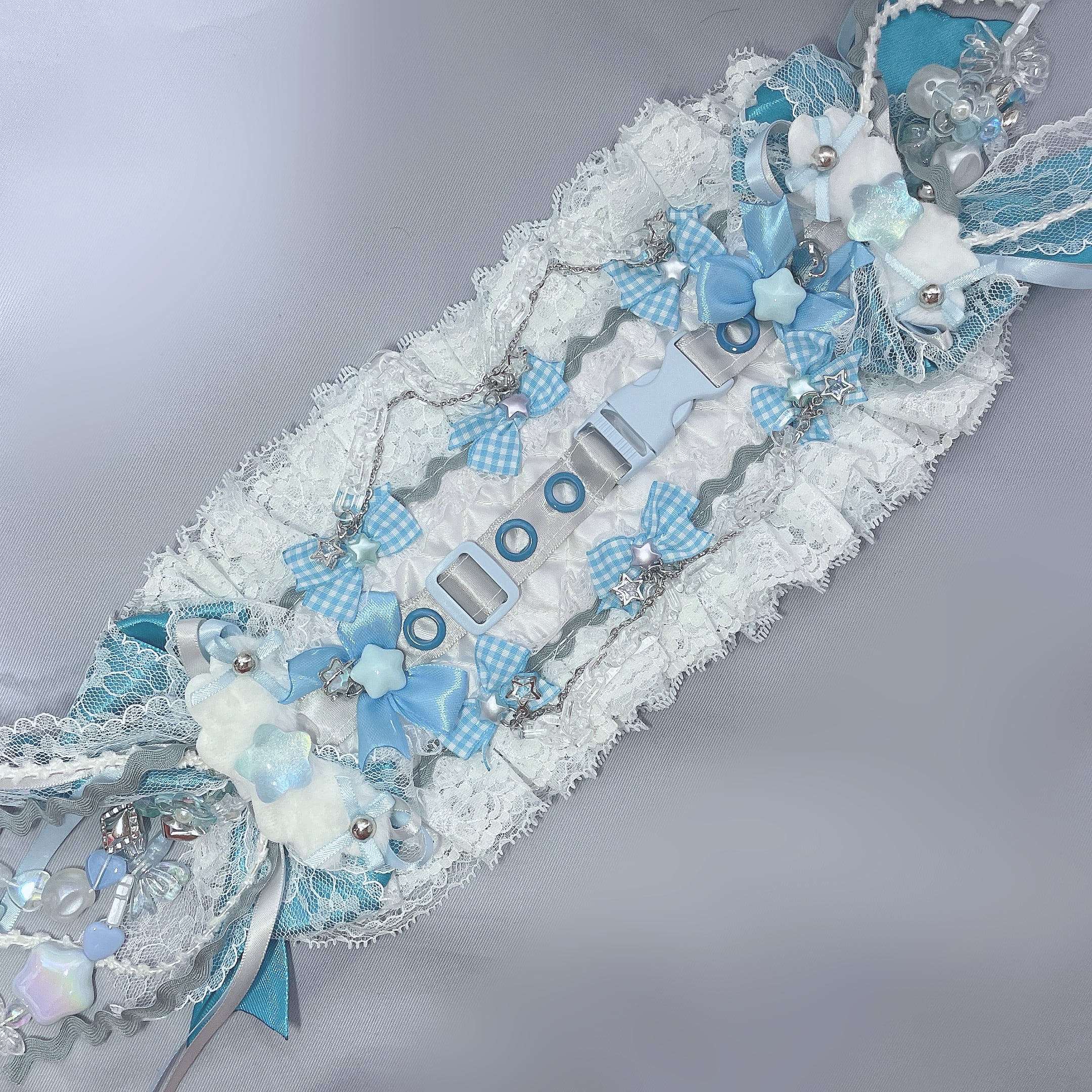 フワッフワのボリューミーレースやフワフワお羽を使った、まるで雲のようなヘッドドレスです!クリアチェーンを垂らしたり、あらゆるところに星が散りばめられたり、細かいところまでこだわって仕上げました