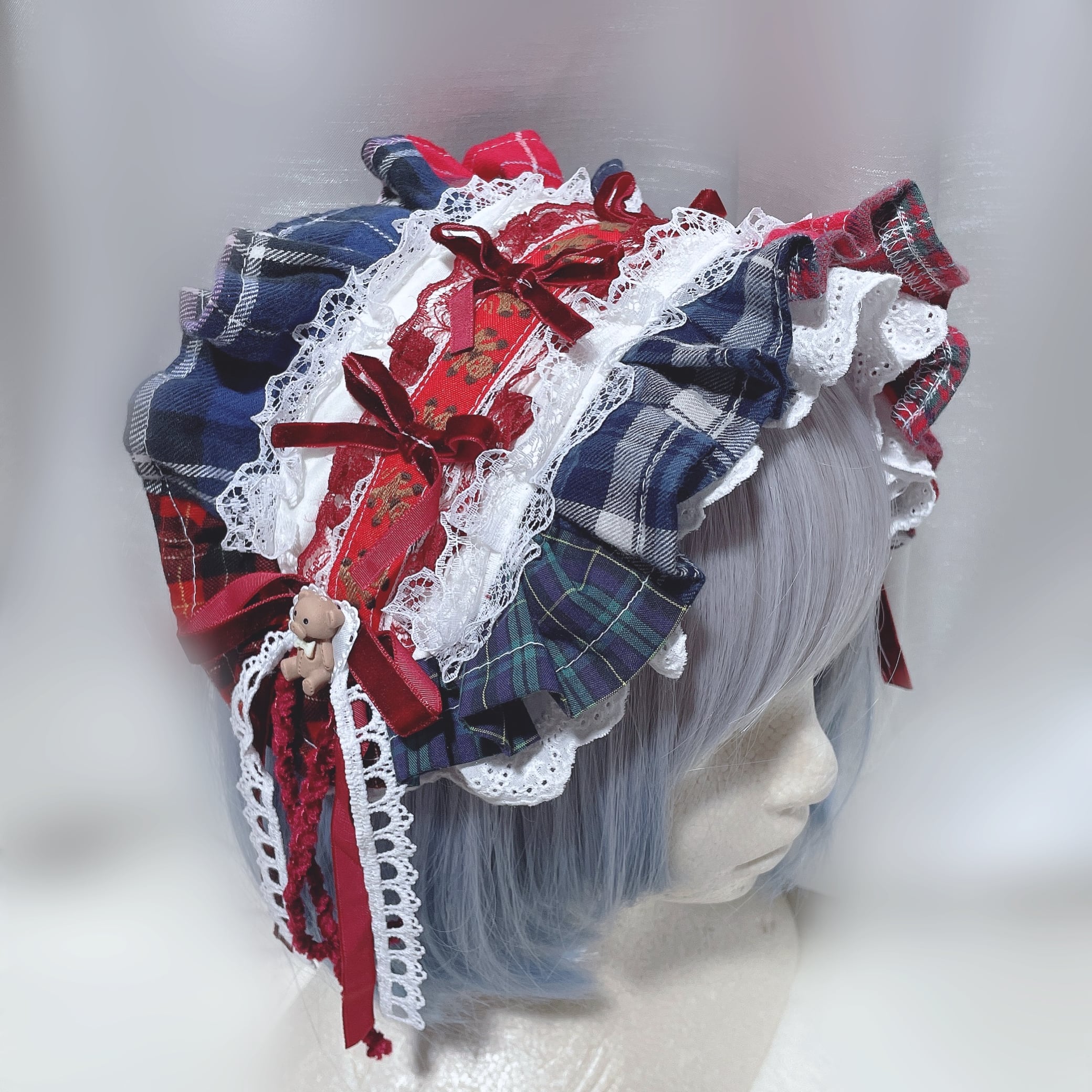 つぎはぎパッチワーク風のチェックフリルをフリフリにあしらったヘッドドレスです。