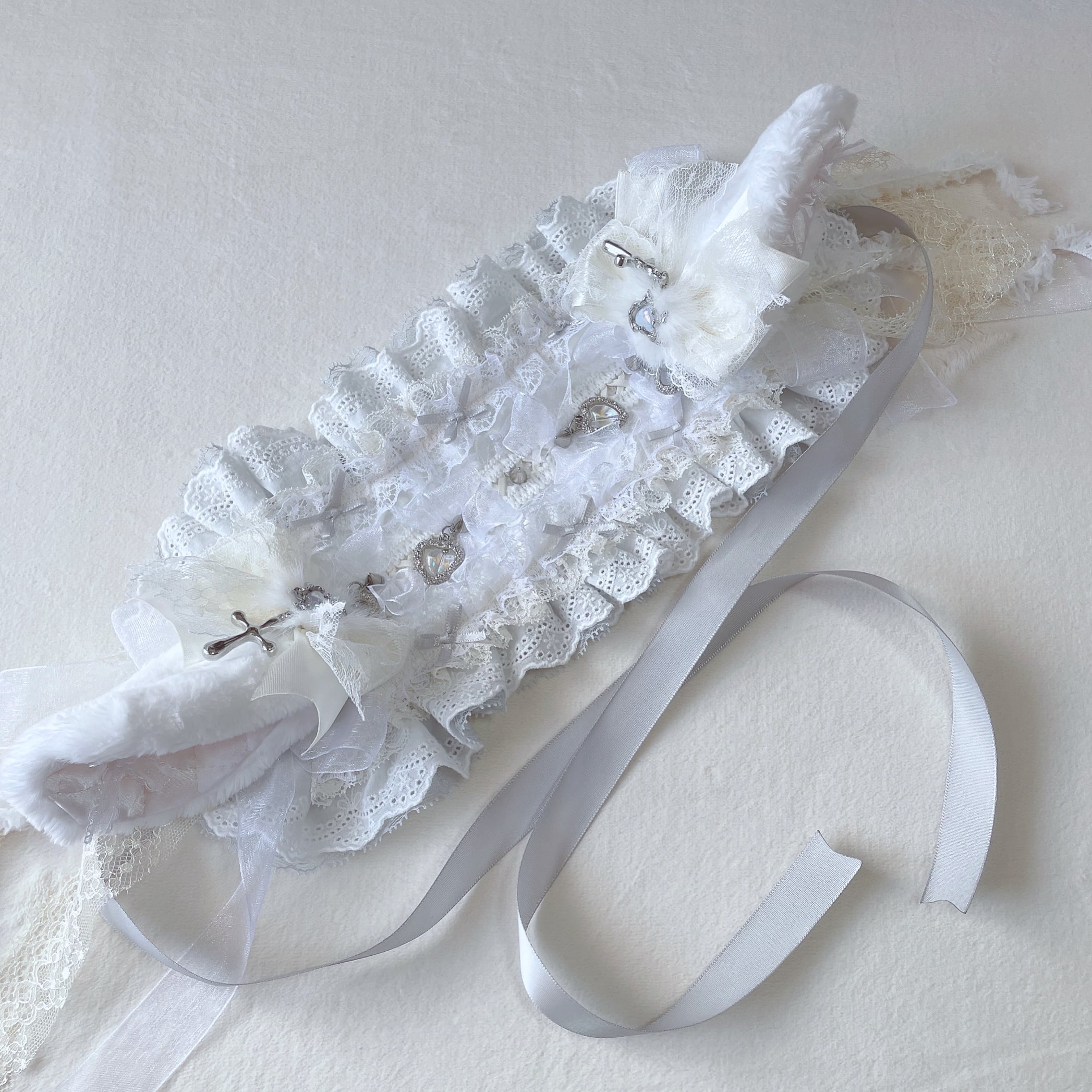 白ロリパンク垂れ耳ヘッドドレス(3way)