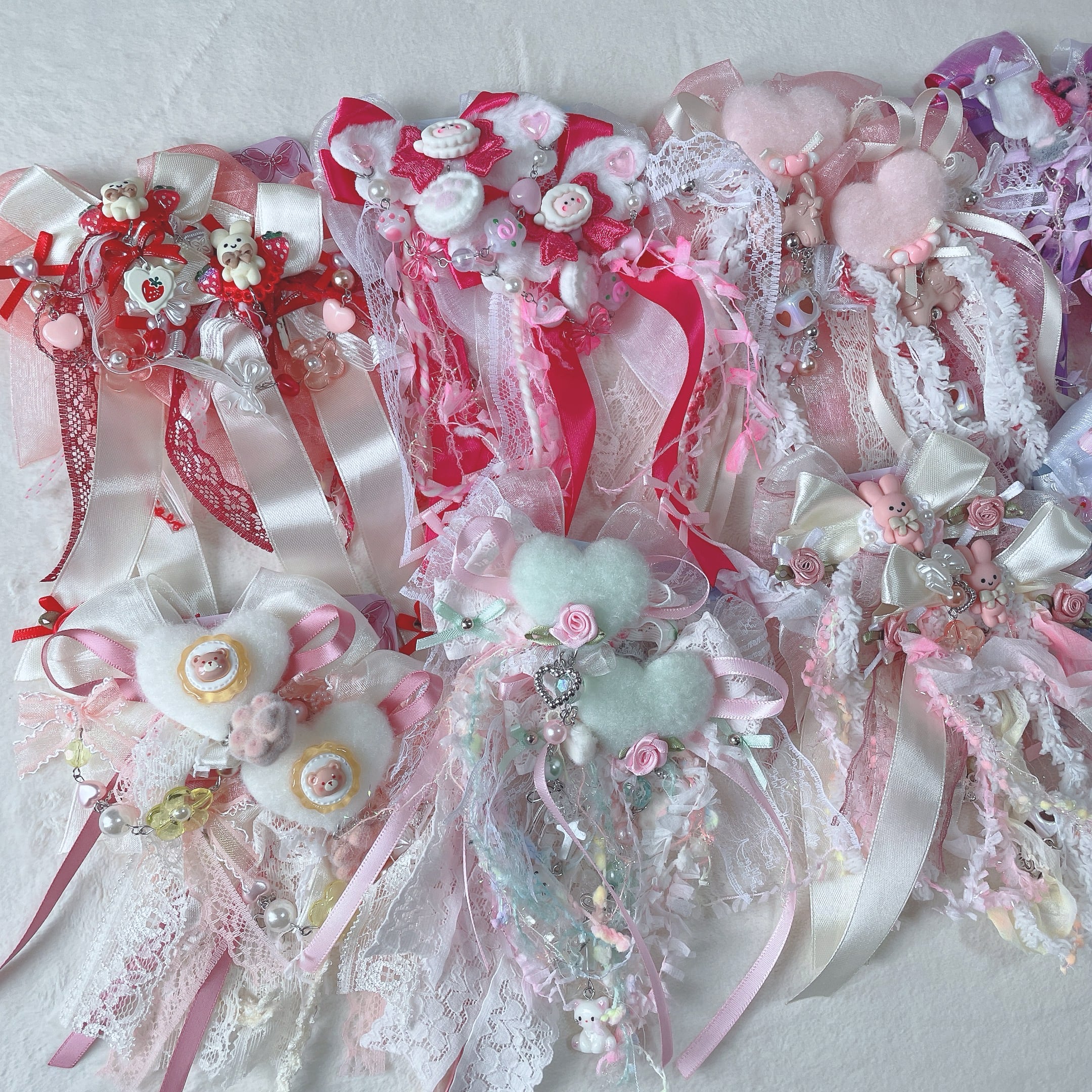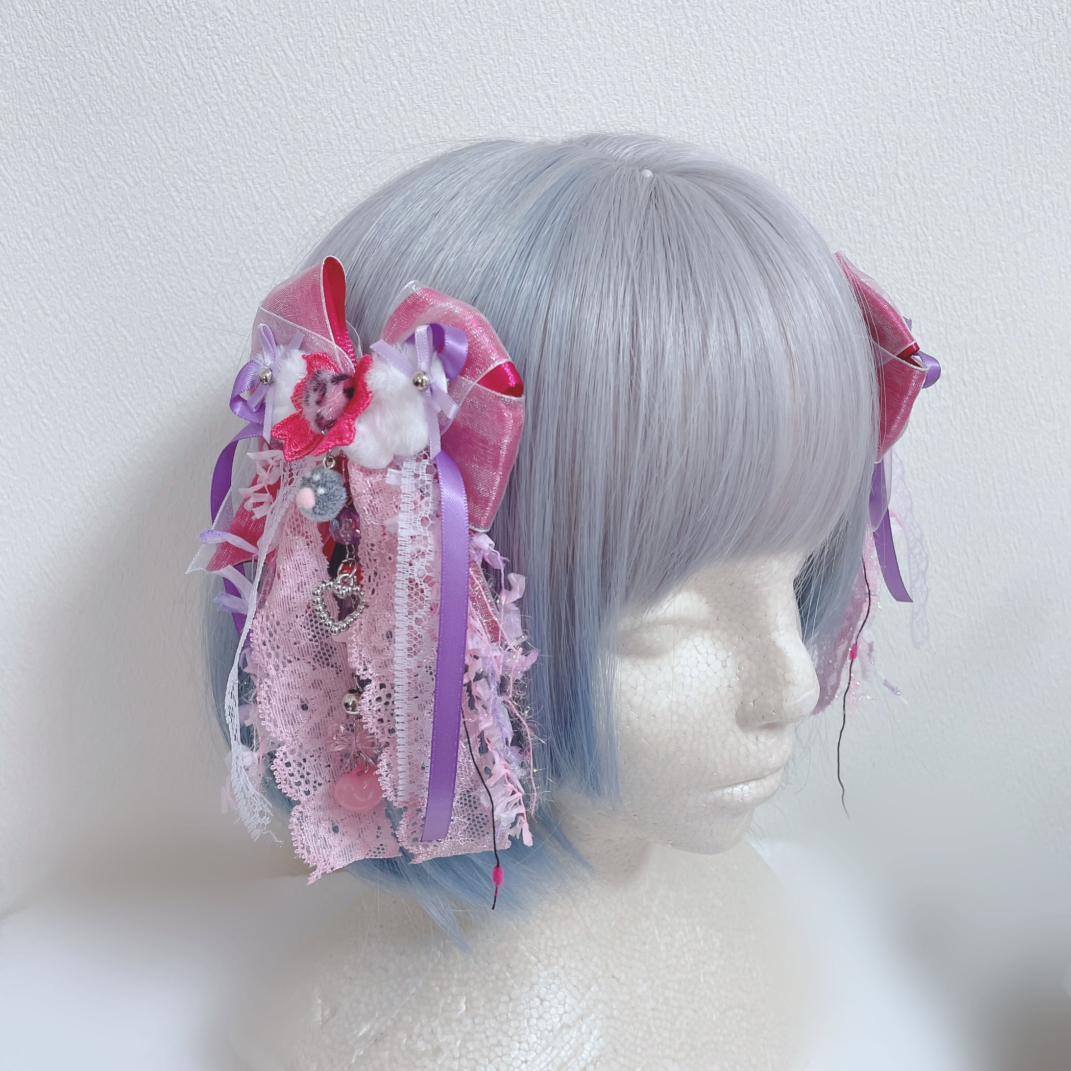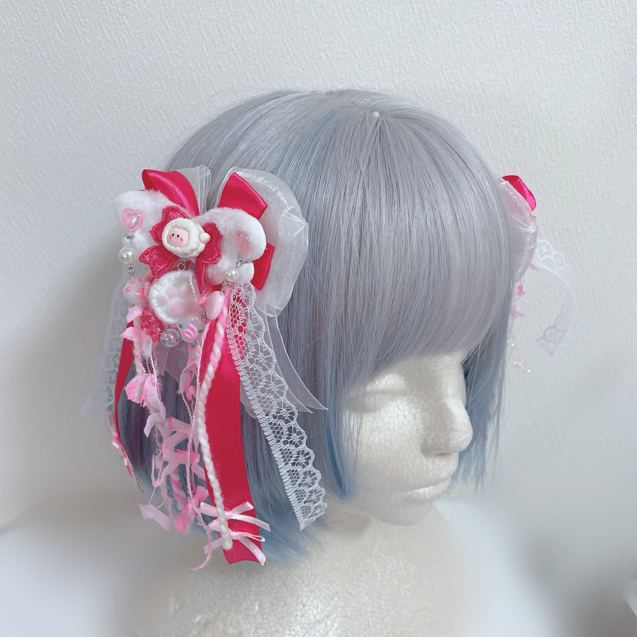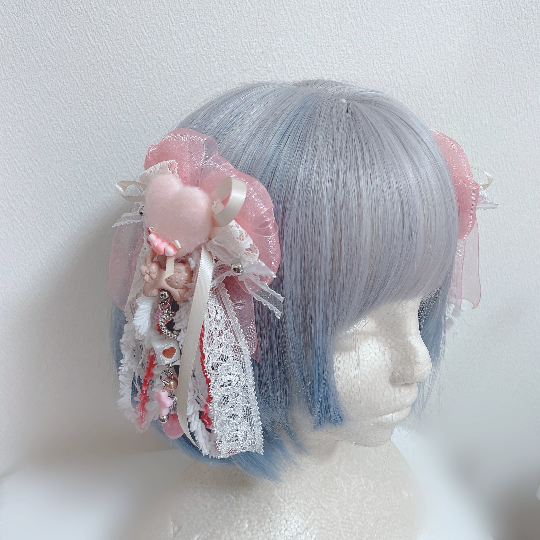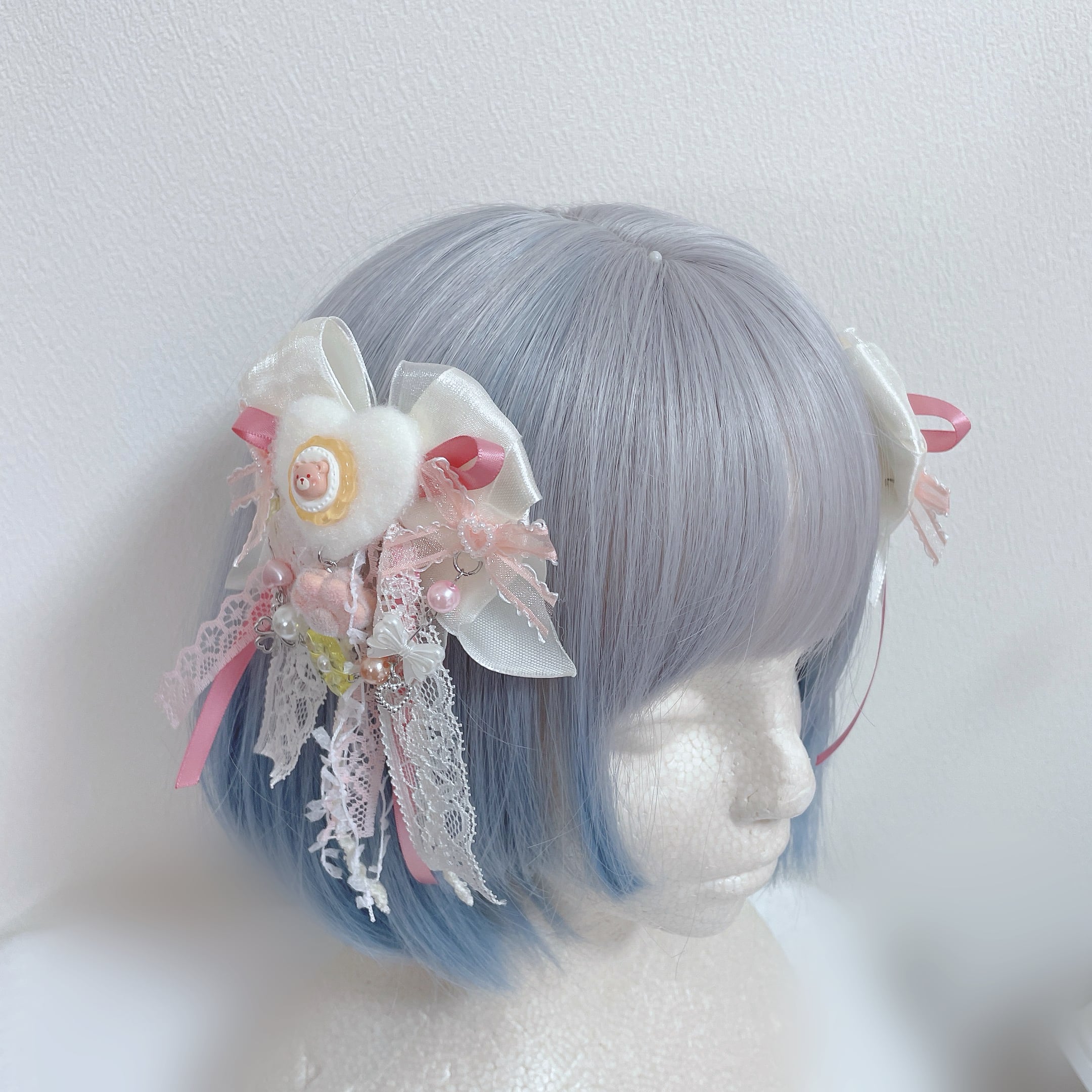 アニマル系のパーツやチャームを使った、ユラユラ可愛いリボンヘアピン♡フワフワなレースや様々なビーズチャームで、細かいところまで可愛く仕上げました♡